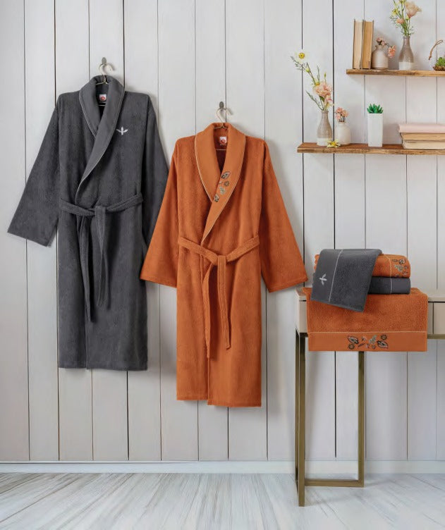 Entdecken Sie unsere exklusive Bademantel-Kollektion mit hochwertigster Baumwolle. Jedes Set enthält einen Premium-Bademantel (2kg Qualität) und ein passendes Handtuch – perfekt für Ihr tägliches Wellness-Ritual.