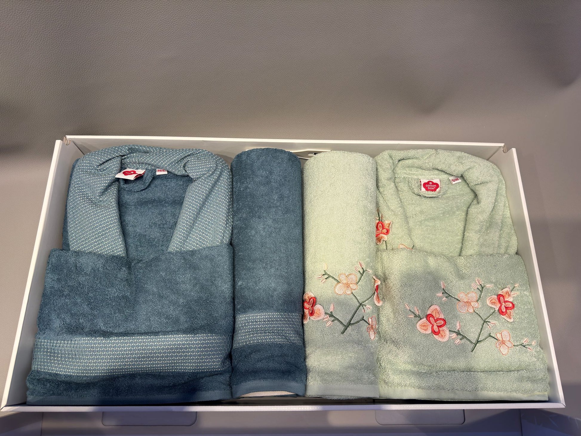 Entdecken Sie unsere exklusive Bademantel-Kollektion mit hochwertigster Baumwolle. Jedes Set enthält einen Premium-Bademantel (2kg Qualität) und ein passendes Handtuch – perfekt für Ihr tägliches Wellness-Ritual.