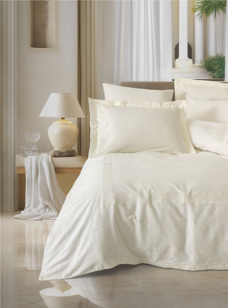 Bettwäsche Set für 2 Person Brode Saten Luxe-Ekru