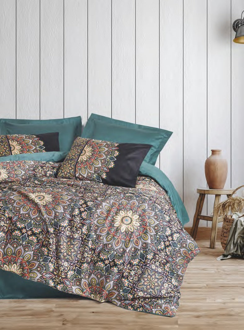 Bettwäsche Set für 2 Person Baskili Saten Ornate-Petrol