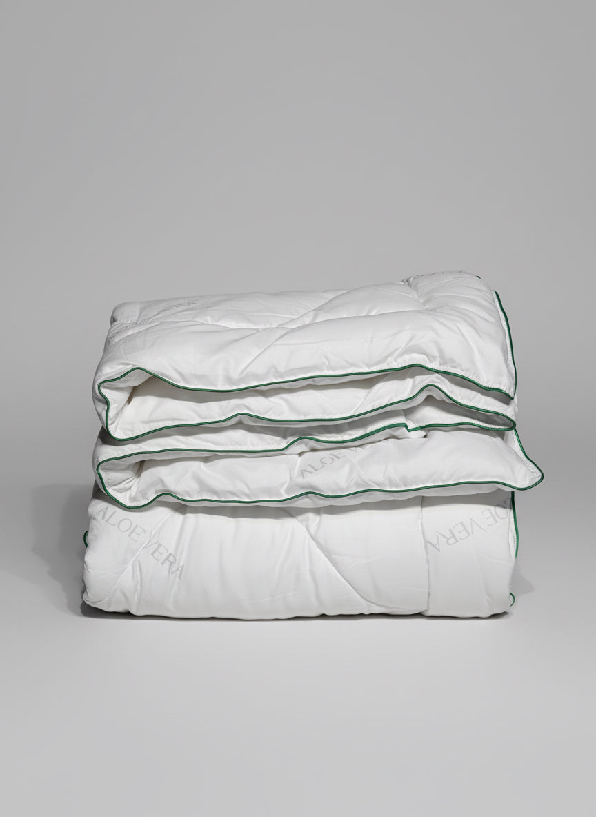 Möchten Sie nachts die Feuchtigkeit Ihrer Haut bewahren, Schwitzen verhindern und morgens erfrischt aufwachen? Die **Aloe Vera Decke** ist genau das Richtige für Sie – mit Stoff, der mit den wertvollen Extrakten der Wunderpflanze Aloe Vera angereichert ist! Die seit Jahrhunderten bewährten entzündungshemmenden, antibakteriellen und feuchtigkeitsspendenden Eigenschaften der Aloe Vera bringt diese Decke direkt in Ihr Schlafzimmer. Sie steigert Ihre Schlafqualität auf natürliche Weise. Jede Berührung fühlt sich seidenweich an, jede Nacht bringt frische Entspannung!